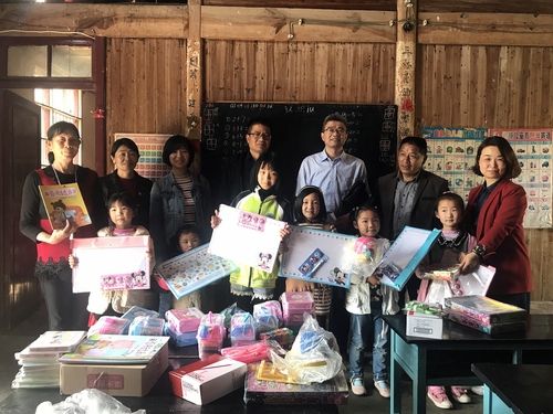 中午时分,纺轻教工党支部的老师们来到村幼儿园,将带来的书籍和文具赠送给幼儿园的师生,孩子们雀跃的欢呼声在简陋的教室里回荡。