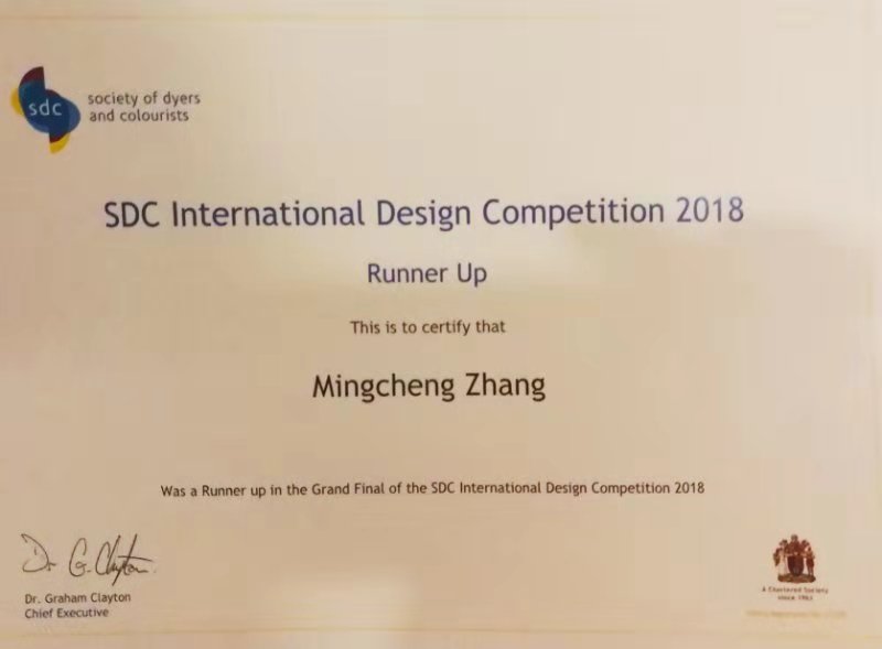 1126日,由英国皇家染色学会主办的“着色未来”色彩设计大赛国际总决赛在英国伦敦举行,纺织服装学院服装与服饰设计专业2015级张铭成同学的作品“筚路蓝缕”从全球14个国家和地区的作品中脱颖而出,喜获亚军的好成绩。