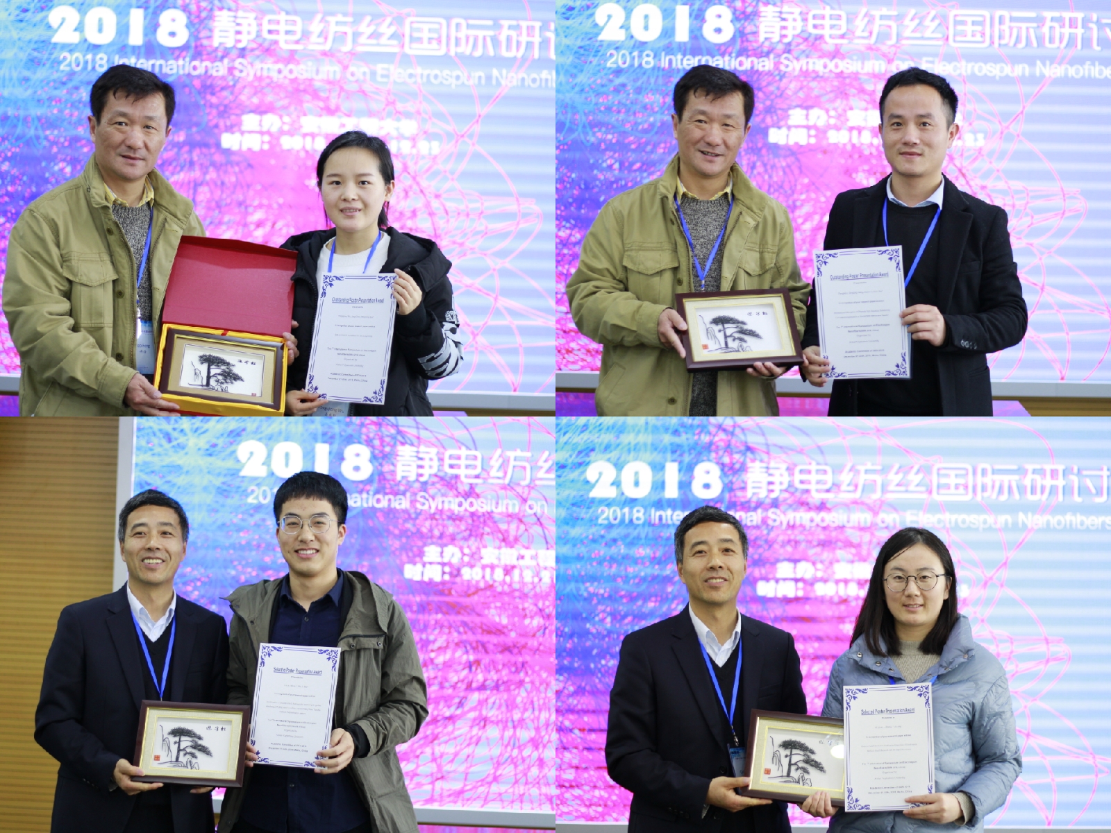 12月23日上午,会议设3个分会场,近20名静电纺丝和纳米纤维领域的专家学者作了口头专题报告。口头报告结束后,会议还进行了墙报展。经专家评比,会议评出了6份杰出墙报和6份优秀墙报,并为获奖者颁发了证书和奖品。