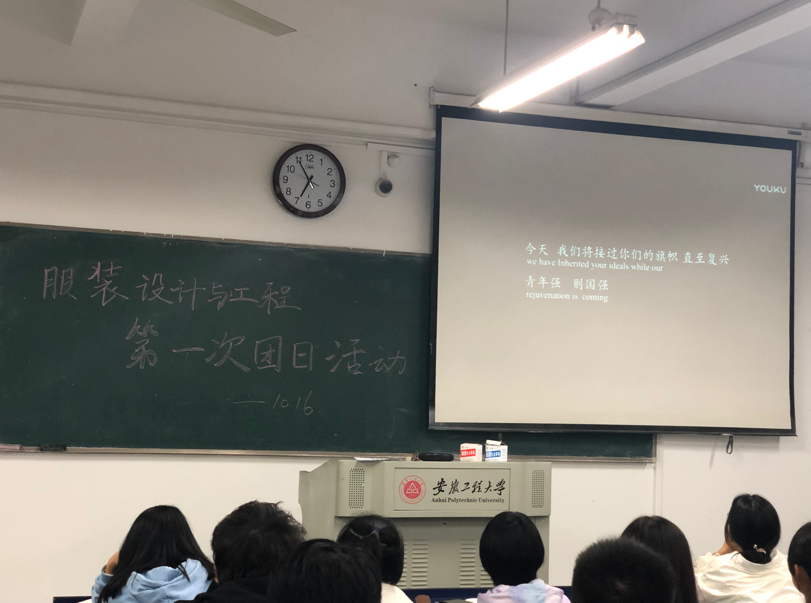 10月10日,19级纺织专业团支部组织同学观看了《新中国成立七十周年发展历程》纪录片,各团支部结合活动主题分别展开特色团日活动。其中,纺织191班团支书王亚璇带领班级同学“不忘初心,忆苦思甜”,让同学们领略了祖国的繁盛与强大,纵然内心中燃起无限的自豪与骄傲,这是伟大的新中国才能给我们荣耀感。纺织192班的团支书严玉婷通过组织辩论活动,力求增强团日活动本身的趣味性,加深当代大学生爱国、爱校之情。纺织193班团支书许雨欣通过设置现场知识抢答环节,充分调动同学们积极性,激励大家沿着七十年前辈们开辟的道路,与祖国共成长。纺织194班团支书潘显苗通过理论宣讲的形式让大家更加深刻地体会到了这七十周年的发展与变化。
