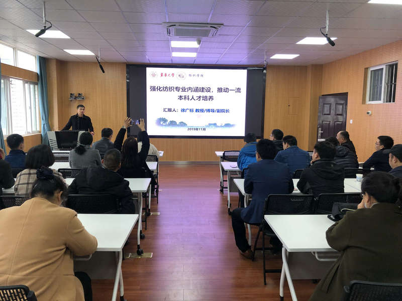 1127日下午,应纺织服装学院邀请,东华大学纺织学院副院长徐广标教授为纺服学院全体教师作了题为《强化纺织专业内涵建设,推动一流本科人才培养》的专场报告。报告会由学院副院长袁惠芬主持。