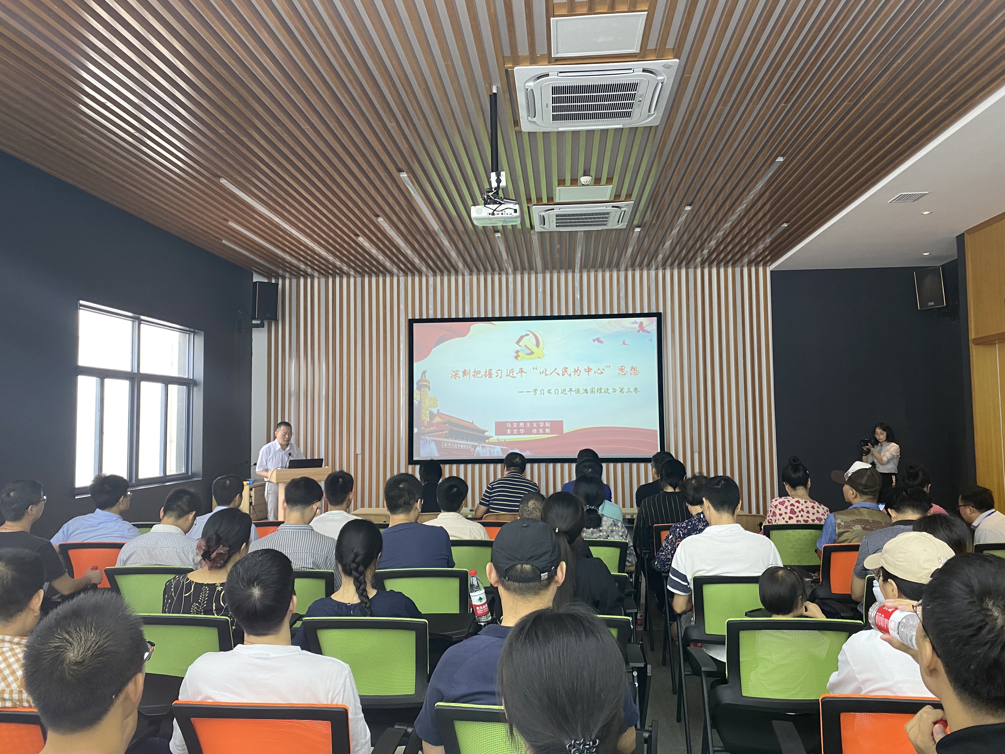 为落实校党委宣传部、组织部下发的《关于认真组织学习<习近平谈治国理政>第三卷的通知》精神,学院党委在殷港小镇会议中心集中举行党委中心组学习和党支部主题党日活动。会前,院党委书记冉昆玉就全院认真学习《习近平谈治国理政》第三卷作了部署和要求。马克思主义学院徐东辉教授应邀作“深刻把握习近平‘以人民为中心’思想——学习《习近平谈治国理政》第三卷”的辅导报告。徐东辉从“以人民为中心”思想的渊源追溯、“以人民为中心”思想的内容解析、深入贯彻“人民为中心”思想等三个部分全面系统地讲解了习近平“以人民为中心”思想的深刻内涵和实践要求,并就如何深入学习《习近平谈治国理政》第三卷谈了体会和建议。新入职党员教师王赫博士表示,深入基层开展学习活动,亲眼目睹乡村振兴新成就,对习近平“以人民为中心”思想有了更深刻的理解和感悟,表示将始终坚持不忘初心、牢记使命,努力把自己的专业知识和研究成果与乡村振兴的实践相结合,在校企合作、校地共建等方面做出自己应有的贡献,以实际行动践行“以人民为中心”的思想。