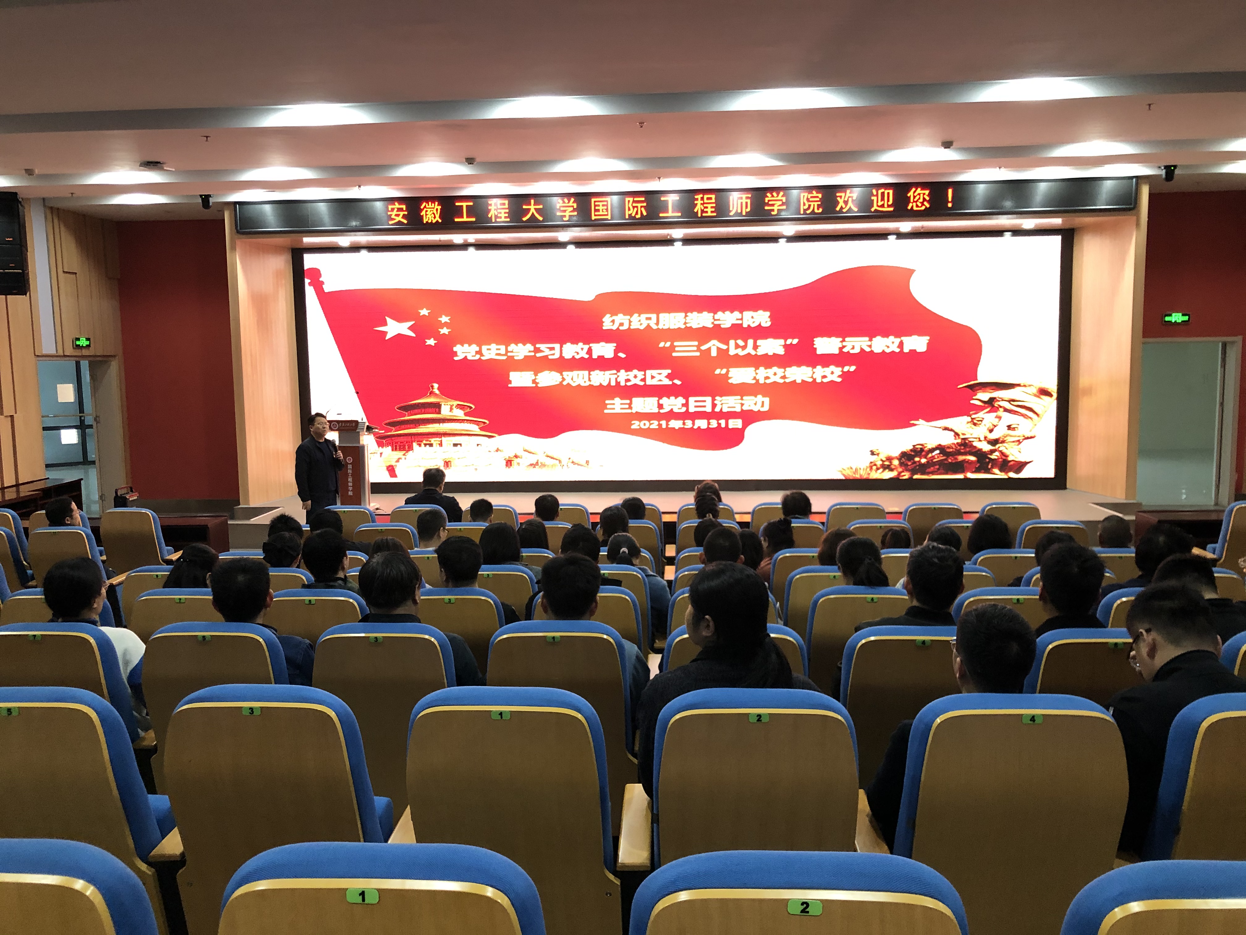 3月30日下午,纺织服装学院组织全体教职工前往新校区国际工程师学院,开展党史学习教育、“三个以案”警示教育暨“爱校荣校”主题党日活动。纺织服装学院一行受到了国际工程师学院校区管委会常务副主任魏长顺、配建办副主任陈阳、管委会综合科科长王中江等热情接待。