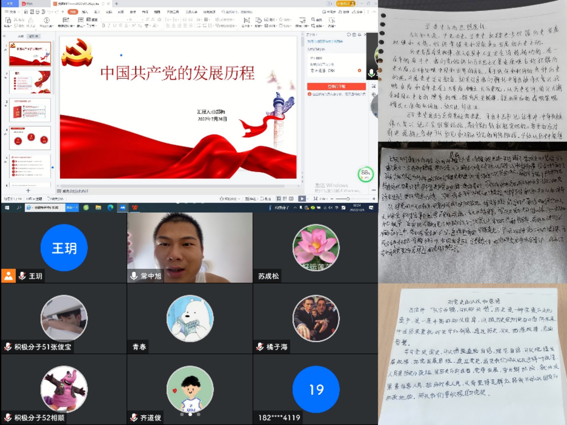 为迎接党的二十大胜利召开,引导广大学生学深悟透百年党史,不断坚定历史自信,在新征程中砥砺奋进。7月26日下午,纺织服装学院轻化专业学生党支部组织全体党员和部分入党积极分子开展了以《中国共产党的奋斗历程》为主题的微党课。