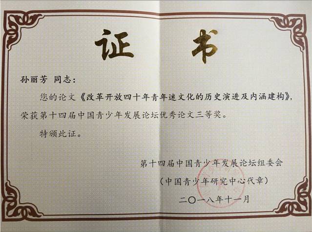 我校孙丽芳博士在第十四届中国青少年发展论坛获奖