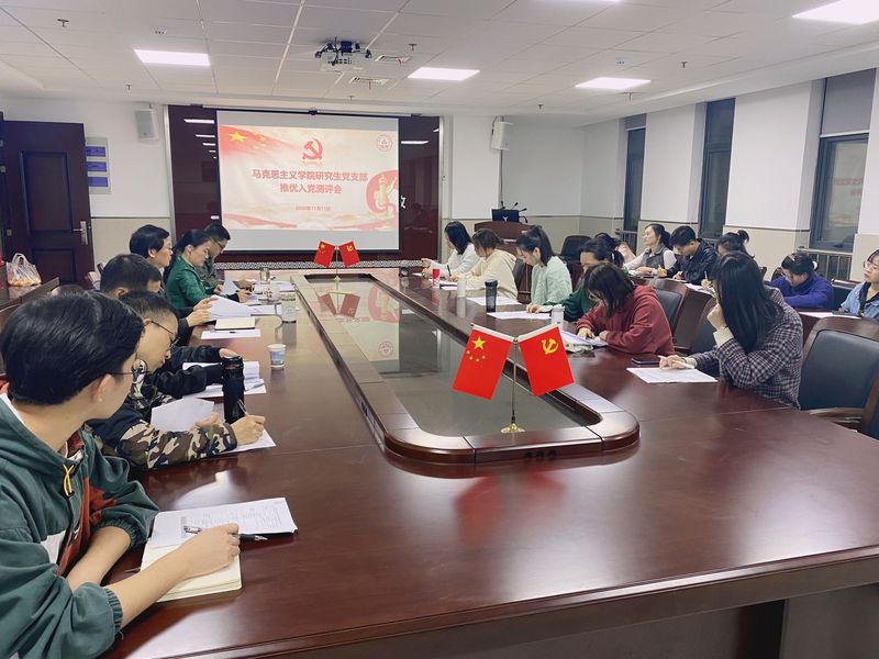 11月11日晚,马克思主义学院研究生党支部在学院1512会议室召开支部推优入党测评会。学院党总支委员、研究生党支部全体党员以及入党积极分子参加会议,会议由研究生党支部书记李德才主持。
