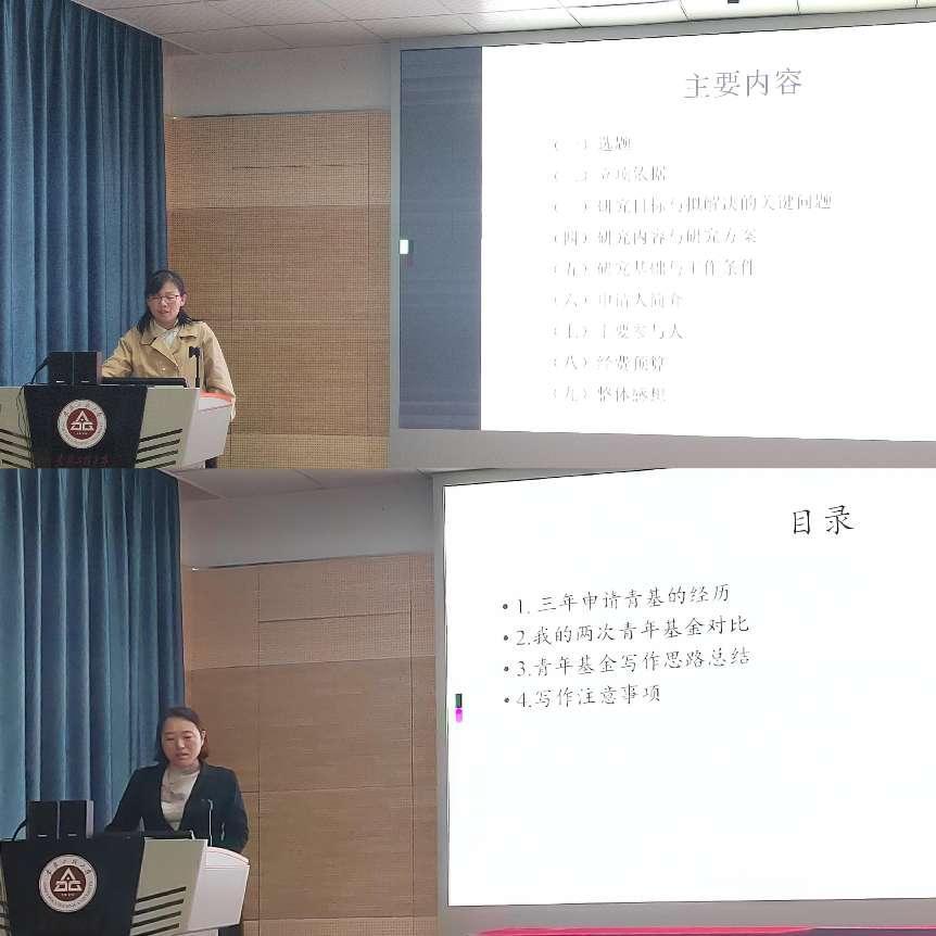 刘艳和张会敏老师分别从“国家自然科学基金申请心得 ”和“我的基金写作分享”详细分享了国家基金申报的经验。