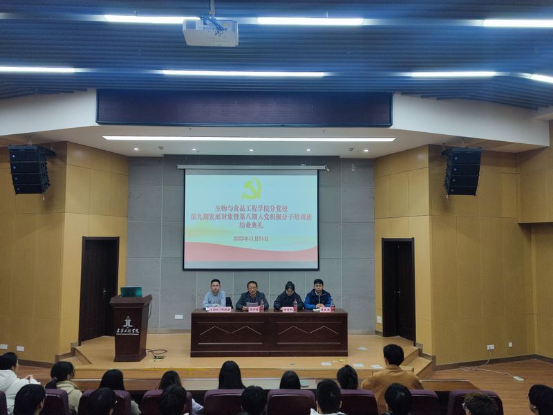 11月24日晚,生物与食品工程学院在C座报告厅举行第九期发展对象培训班暨第八期入党积极分子培训班结业典礼。学院党委副书记王彦青出席,辅导员李良渊、何祥玲、胡晓康参加,活动由胡晓康主持。