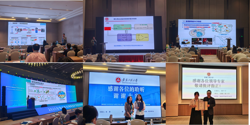 会议期间,我校赵明、刘坤、陈宇、胡孟凯4位教师分别做了题为“智能使能技术开发及在微生物细胞工厂创建领域应用”、“基于结构指导设计响应甾体化合物的非天然转录因子”、“关键染色质调控因子促进酿酒酵母氮代谢重构的分子机制”和“谷氨酸棒杆菌底盘细胞构建与优化及其在生物制造中的应用”的主题报告。吴萱和程千子2位研究生分别报告了他们在“壳聚糖辅助杨木酸性预处理同步增效预处理液发酵及预处理物料酶水解效率”和“铁酸镍基纳米粒子-Klebsiella sp.-fhlA杂化系统光催化转化甲酸制氢机制研究”方面的研究进展。