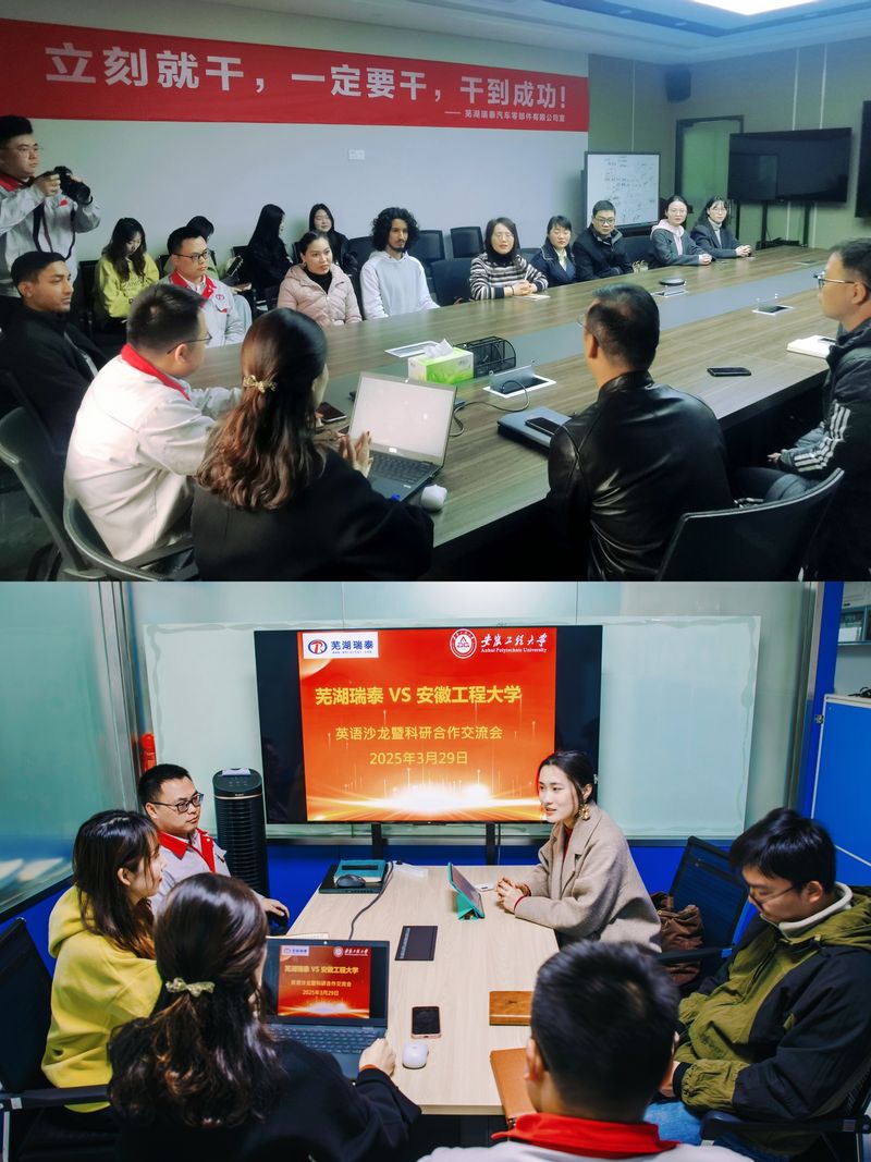 329上午,日韩欧美福利视频_黑人巨大人精品欧美三区_欧美成人另类人妖_欧美在线精品一区二区三区_欧美一区二区三区性视频_日韩精品欧美视频_性欧美极品xxxx欧美一区二区外国语学院、国际教育学院与芜湖瑞泰汽车零部件有限公司联合举办的英语沙龙暨校企科研合作交流会在瑞泰公司成功举行。瑞泰公司董事长兼总经理刘春平、人力资源部部长朱媛媛、外国语学院副院长韩利敏、教师张兵和国际教育学院教师涂文婷出席了本次交流活动。活动以语言赋能,创新驱动”为主题,汇聚高校研究生、留学生及企业代表近50人,通过语言文化交流与科研对话,深化校企合作内涵,探索人才共育新模式。